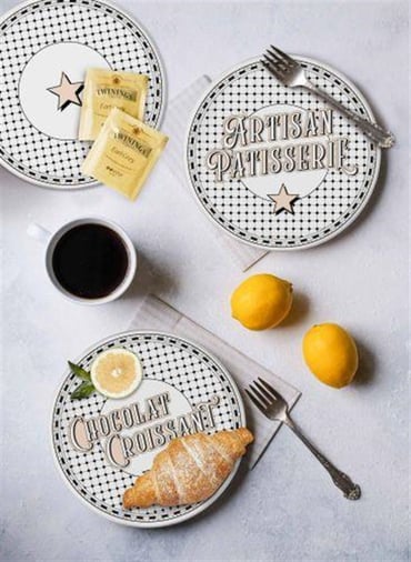 The Emily Patterned Cake Plate Set includes 6 plates. Product dimensions: Diameter: 19 cm. The product is made of ceramic. Suitable for washing in a dishwasher.